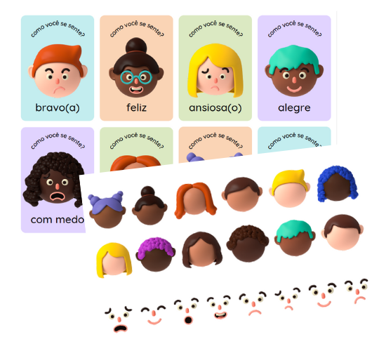 O kit de Emoções é um complemento perfeito para o processo de alfabetização.