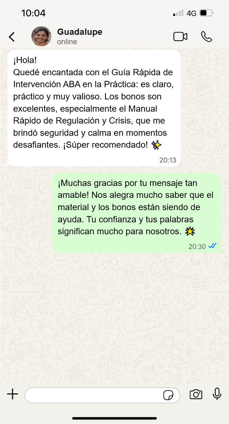 Con el Guía Rápida de Intervención ABA en la Práctica , tendrás protocolos listos para aplicar, aumentando la efectividad de tus intervenciones y la tranquilidad de tu práctica profesional.